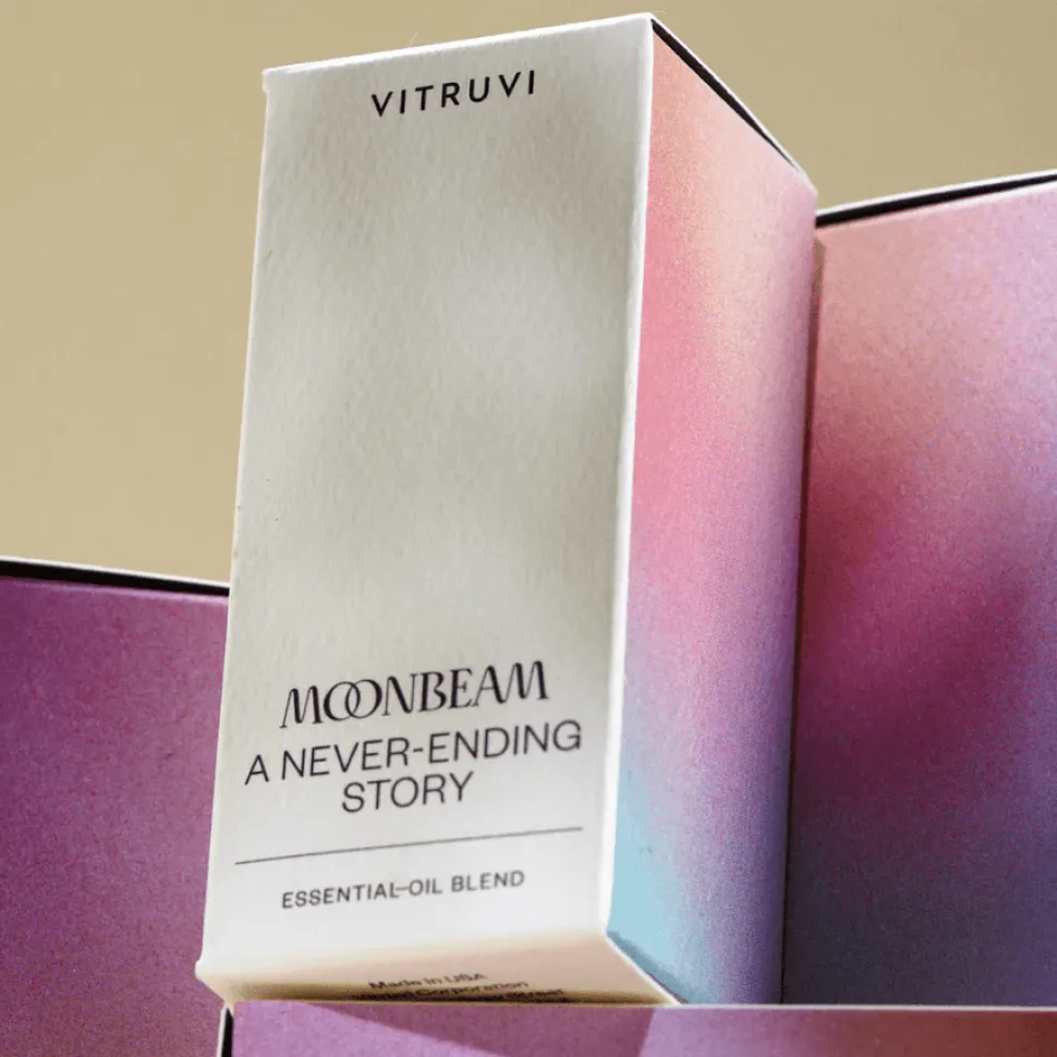 Moonbeam is floral and evocative. With top notes of Wild Orange, Rose, and Jasmine and a bottom note of Ho Wood.