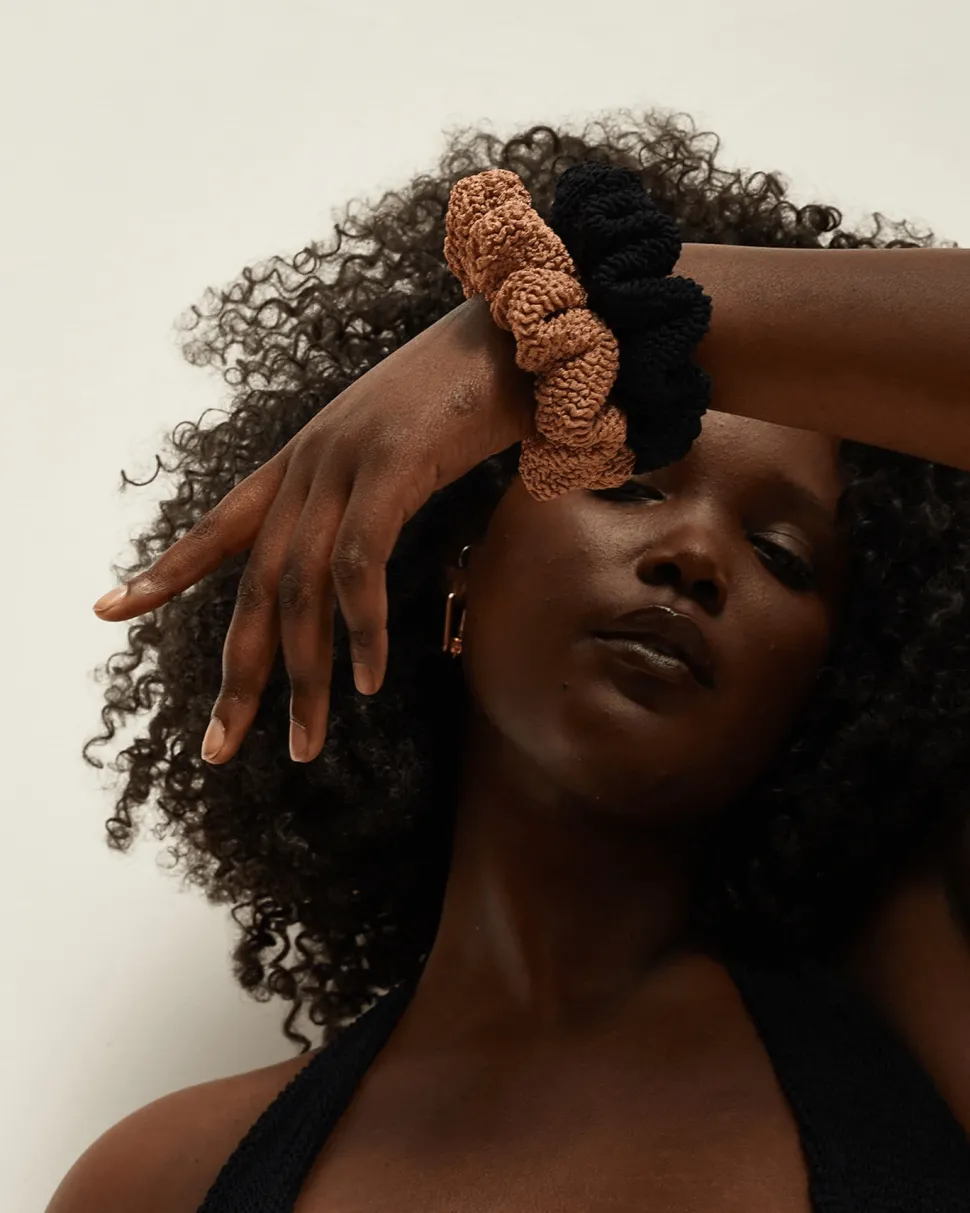 Hair scrunchie made from Hunza G’s signature crinkle stretch fabric